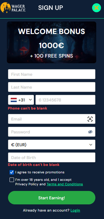 Het registratieproces bij WagerPalace is ontworpen om zo eenvoudig en snel mogelijk te verlopen, zodat nieuwe gebruikers zonder vertraging toegang krijgen tot het volledige aanbod van het platform.